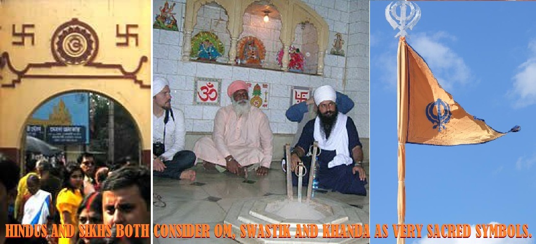 HINDUS AND SIKHS BOTH CONSIDER OM, SWASTIK AND KHANDA AS VERY SACRED SYMBOLS. Graphics: Hindu Existence.