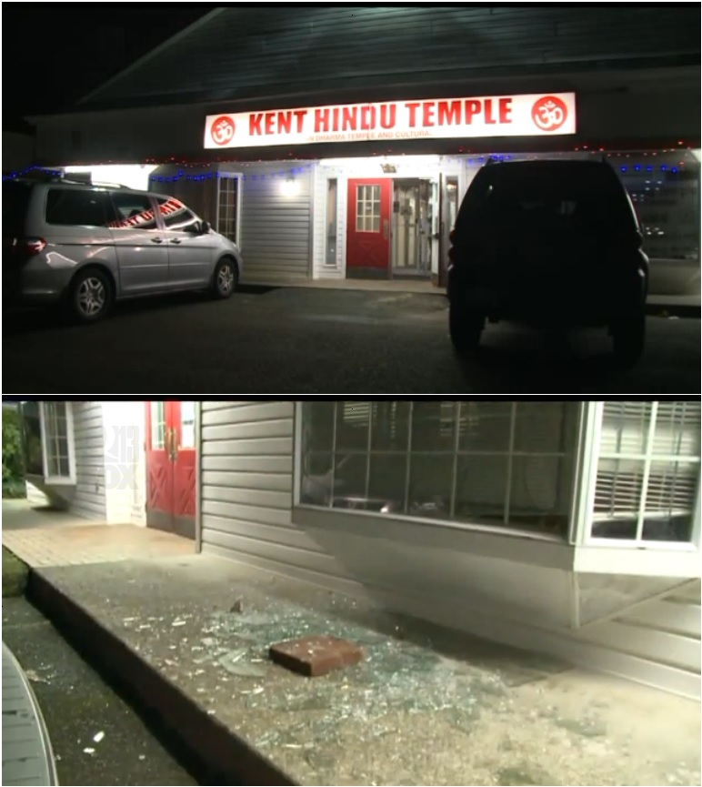 Someone smashed several windows at a Kent Hindu temple sometime between 8 P.M. Thursday and 8 A.M. Friday and printed the word “Fear” on an outside wall. It was the second time a temple in the Puger Sound area was hit by vandals in less than a month.