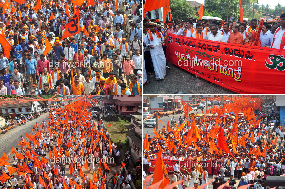 HENB | Udupi | March 10, 2015:: The land of Krishna once again became place of inspiration for Vishwa Hindu Parishad karyakarta’s as huge gathering turned out to witness mega Hindu Samajotsav at MGM Grounds in Udupi on Monday evening.