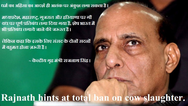 Union Home Minister Rajnath Singh has indicated that the government might push for a blanket ban on cow-slaughter across India.