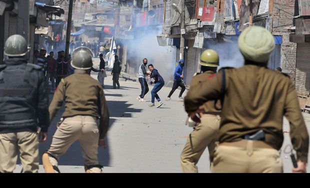 Police in crisis resorted to lathicharge and used tear gas shells as soon as the protesters led by JKLF leader Yasin Malik reached near Ghanta Ghar at Lal Chowk in the afternoon with hundreds of his supporters. Later, a group of youth pelted stones at the police and paramilitary personnel, leading to clashes which lasted nearly one hour.