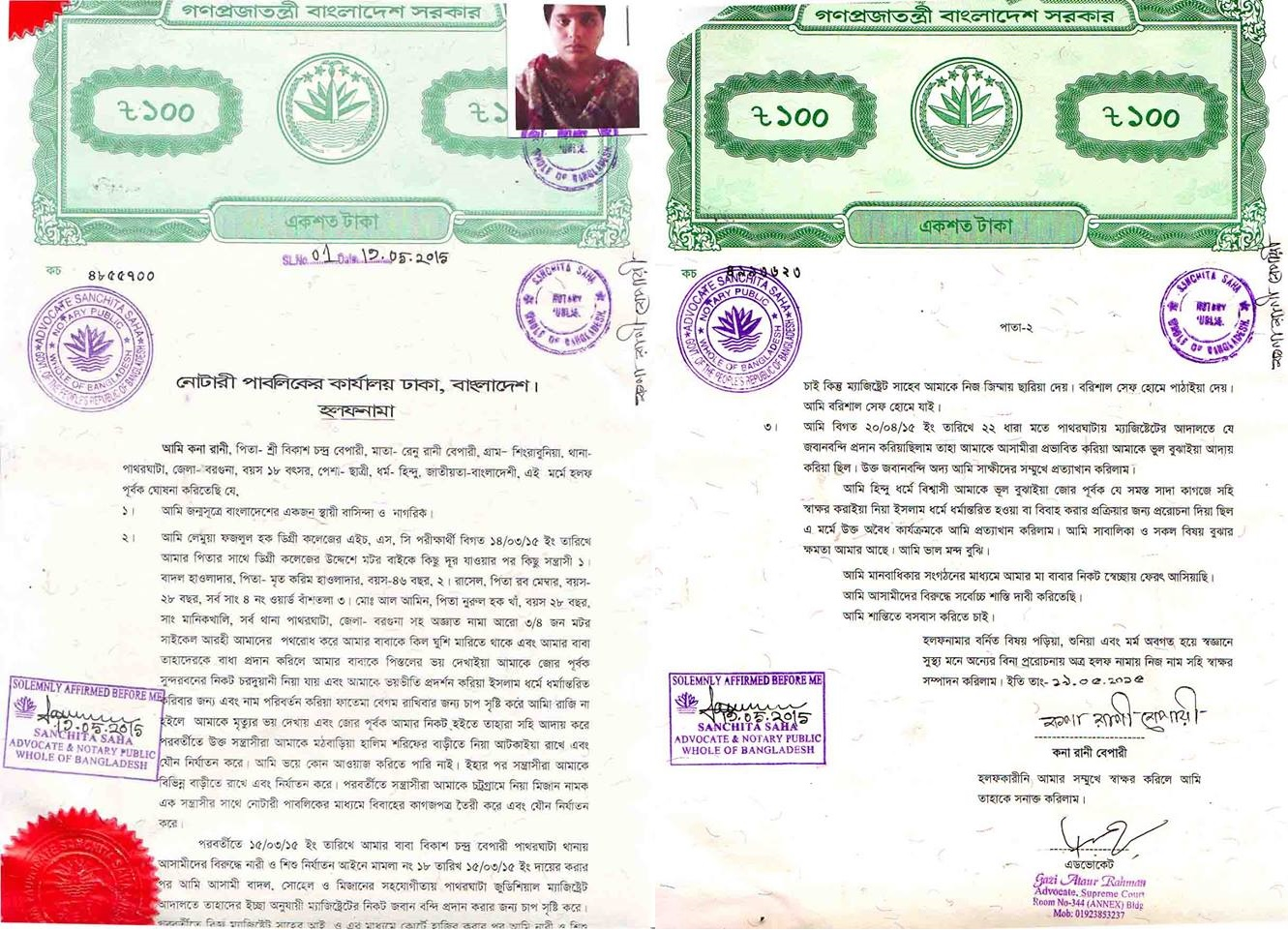 Afterwards, Kona Rani Bepari, by an affidavit before the Notary Public at Dhaka, singed on 19.05.2015 pronounced punishment of perpetrators who kidnapped and abducted her for forceful conversion and marriage. Fortunately, Kona Rani is now free from illegal custody of the perpetrators by the intervention of Court of Law and returned to her parental home after 1 month 9 days.