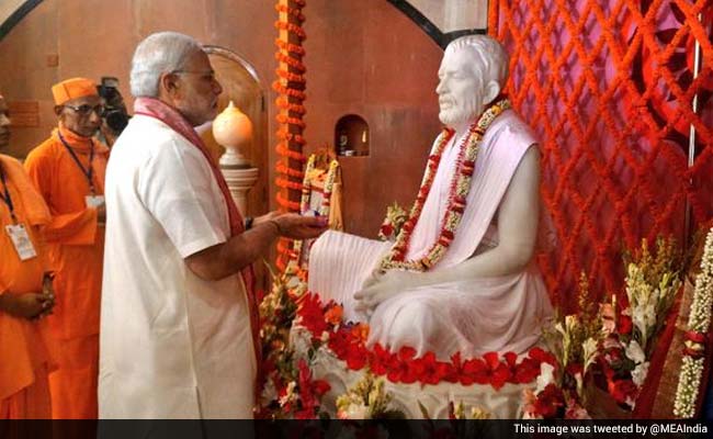 The mission presented the Indian prime minister two commemorative and a biography of Swami Vivekananda.