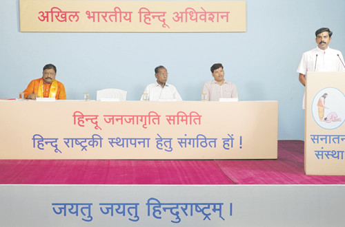HENB-HJS | Ramnathi (Goa) | June 16, 2015:: Condemning the various distortion and misinterpretation of Indian History by the Macaulay and the Communist schools, the 4th Hindu Adhiveshan supports the re-writing Indian History on the basis of ‘Bharatiyata’ and ‘un-biased facts’.