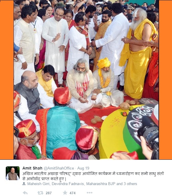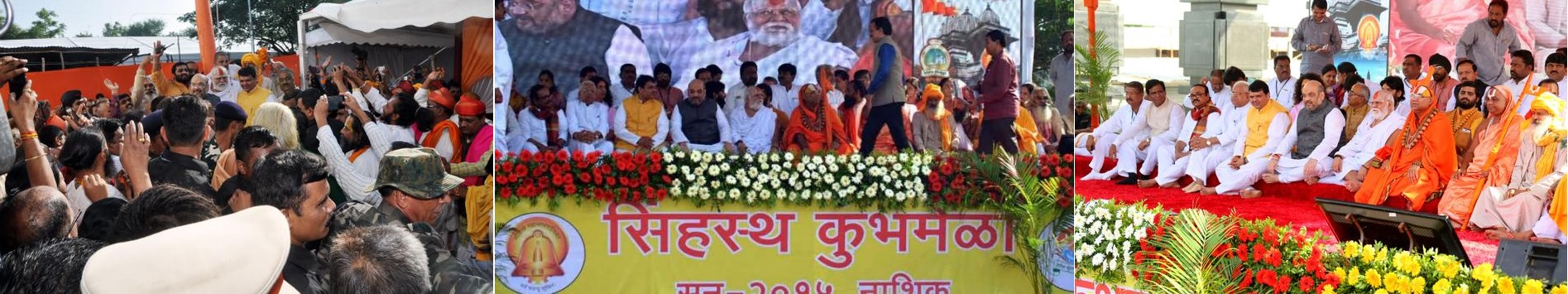 The ‘dhwajarohan’ (flag hoisting) of Digambar, Nirmohi and Nirwani akhadas was held at their respective camps in the presence of BJP president Amit Shah, Maharashtra Chief Minister Devendra Fadanvis, BJP state unit president Raosaheb Danve and various seers.