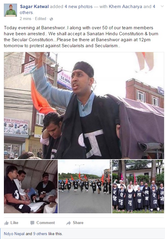 New ‘Anti-Hindu’, ‘Federal’ and ‘Secular’ constitution of Nepal is being promulgated today amidst deploying high security measures, banda, black day and burning of new constitution!  Hundreds of Hindu activists are taken to custody by Nepal Police under preventive arrest.