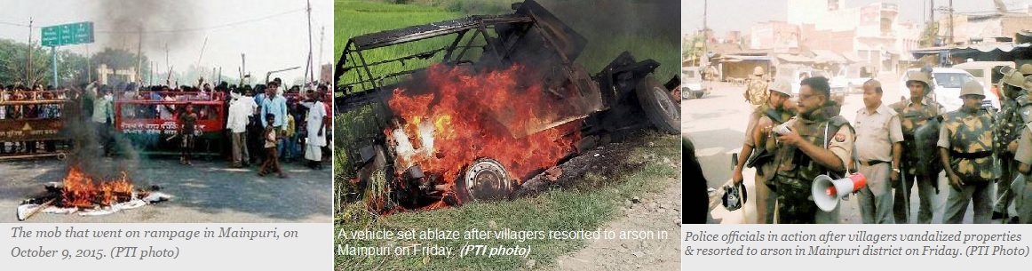 After Bhisada (Dadri), communal tension erupts in UP’s Mainpuri over alleged cow slaughter led to violence and arson near Nagaria village at Karhal area today. Two cases have been registered and 20 persons have been arrested for the violence. Additional police force has been rushed to the area which is part of the Yadav family bastion.