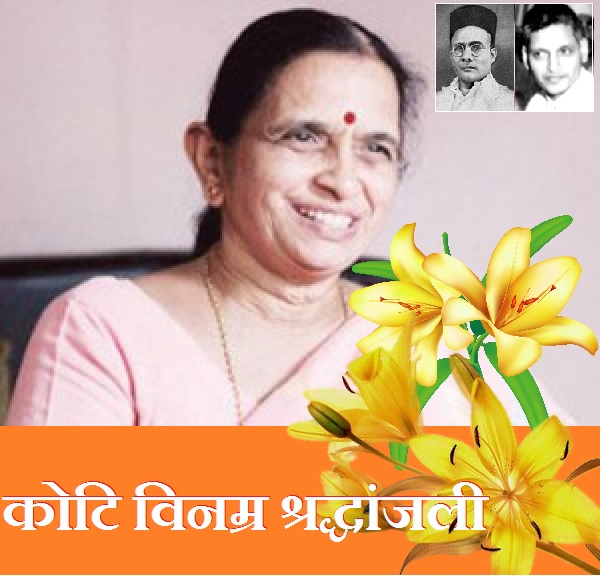 Savarkar, who was in the forefront of many Hindutva movements, was daughter-in-law of Narayan Savarkar, brother of freedom fighter Swatantryaveer Vinayak Damodar Savarkar.