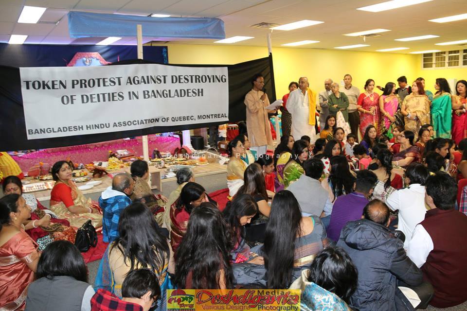 But, we must thank to the Bengali Hindus in  Montréal in Canadian province of Quebec who protested this Islamic vandalism in Bangladesh Durga Puja time by suspending 10  minutes puja rituals and festive schedule in two different places there. The Bangladesh Hindu Association of Quebec (BDHAQ) took this great initiatives.