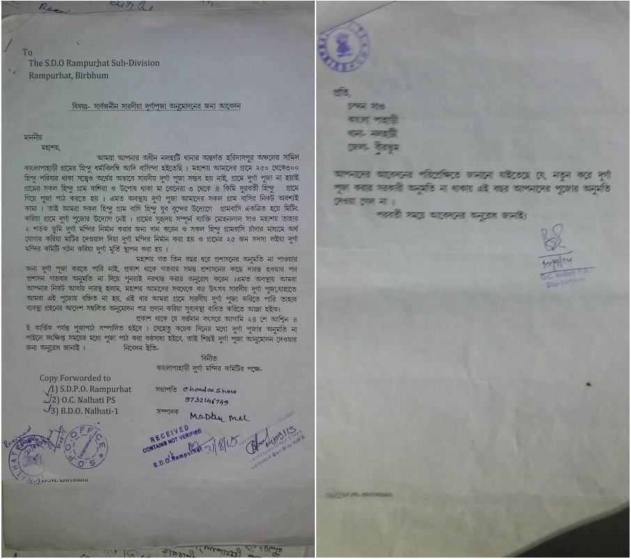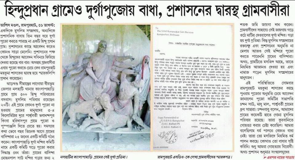 In a village named Kangla Pahari under Nalhati PS in Birbhum district in West Bengal, the local Administration, Panchayat and Police have been jointly preventing a Sharodiya (Navaratrik) Durga Puja for consecutive three years, only to favour the objections of Muslims of the village.