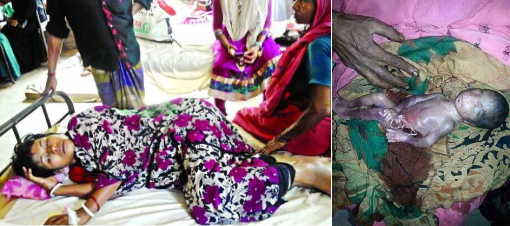 Jihadi hooligans kicked her abdomen. Profuse bleeding caused the critical condition of Tulshi, her baby died in womb.