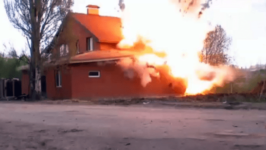 The prayer house was detonated by a water cannon. | Photo: Russia’s Federal Security Service (FSB)