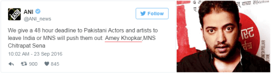 Published on September 23, 2016 at 776 × 213 in MNS threatens Pakistani actors to leave India within 48 hours!
