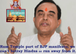 Ayodhya Ram Temple part of BJP manifesto, cannot just run away from it, says Dr Subramanian Swamy. ANI | New Delhi | Oct 19, 2016:: Ahead of Uttar Pradesh Assembly elections polls due … Continue reading