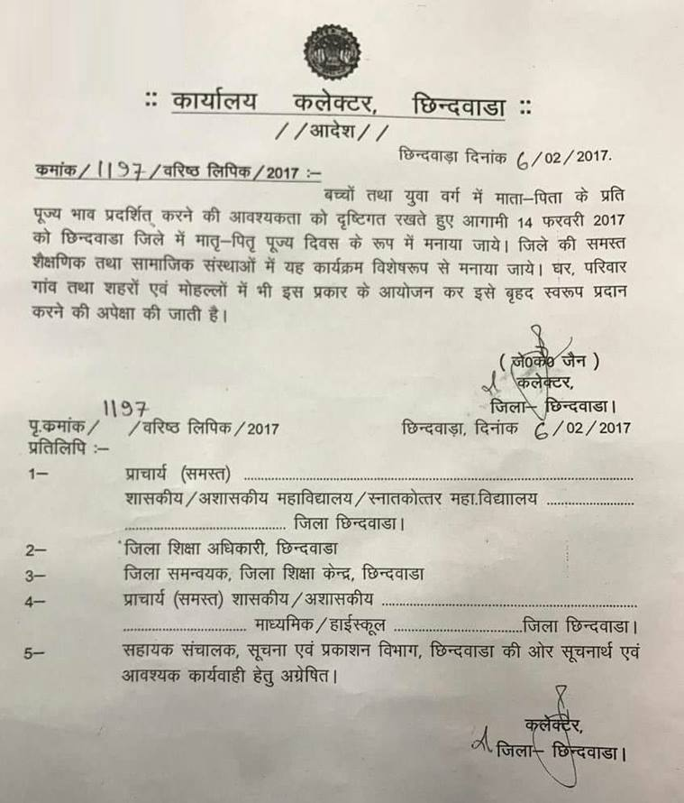 Published on February 12, 2017 at 759 × 890 in Chhindwara collector orders worship of parents on Valentine’s Day.