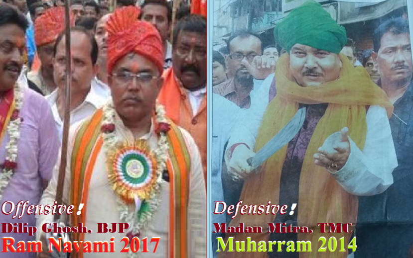 A few hours later, West Midnapore police started a case under the Arms Act, 1959, against BJP legislator and State President, Dilip Ghosh, who was seen with a sword in Kharagpur town on Ram Navami Day (5th April, 2017).