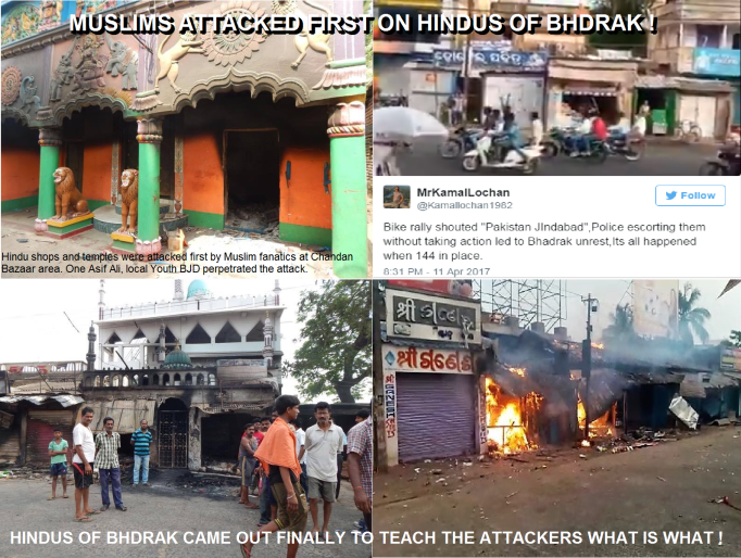 Sambit | OpIndia | Bhadrak | April 13, 2017:: Bhadrak town, located in the northern part of Odisha, has witnessed communal violence recently. The area has been under curfew since Friday (7th April). While Odisha police has been able to contain much of violence by now, curfew is still enforced in the town for the major part of the day (and night) while adjoining areas are still under prohibitory orders under section IPC 144.