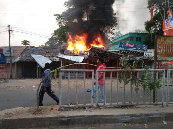 Violence broke out in the town on April 6 after a group staged a demonstration near the Town police station demanding arrest of those involved in posting alleged offensive remarks against Hindu deities on social media.