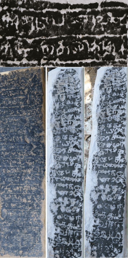 From these exploration, it was identified that a grand temple had been ruined and larger parts of it buried in soil. Ruined foundations, granite pillars and bricks found all around the temple premises, confirm that this temple which had been constructed with granite and bricks, to contain Sanctorum, ‘Antharazham’ Front hall, flag post, Sub-temples, and a boundary wall. The sanctorum and its dome had been fully ruined and currently there is a small mound is found in their place. Except for the ‘Komuki’ linked to the sanctorum, no alters, statues of deities or sculptures had been found so far. Although the architecture, art tradition and the design of the pillars reminds us of Pollonnaruwa Sivan Temple, it could be determined that this is much bigger in construction. Several granite pillars are found scattered around in the temple yard. Several pillars are found buried in the soil. Five Epigraphs had been found from among them.