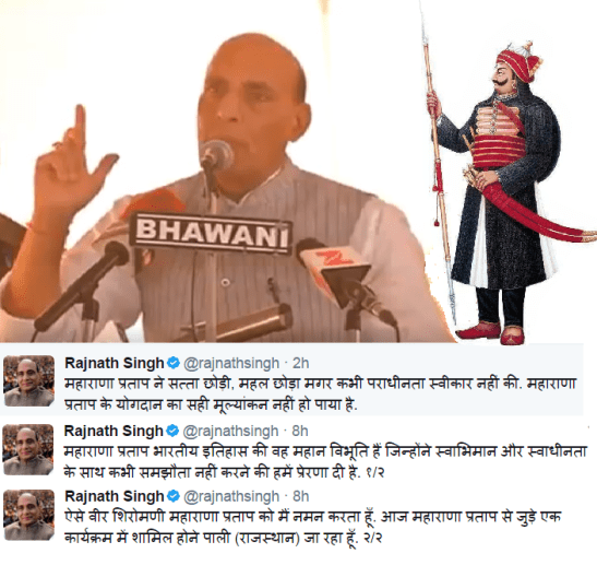 PTI | Jaipur | May 9, 2017:: Stating that Maharana Pratap did not get his due place in history, Union Home Minister Rajnath Singh today urged historians to re-evaulate the contribution of the Rajput warrior.