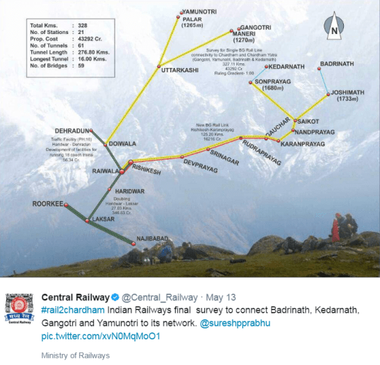 On Saturday last the Railways announced a plan to conduct a preliminary engineering and traffic (PET) survey to lay a broad gauge line connecting the “Char Dhams” (four Hindu pilgrimage sites) in Uttarakhand.