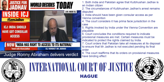 ICJ announces verdict in Kulbhushan Jadhav case, rules in favour of India (Times Now).