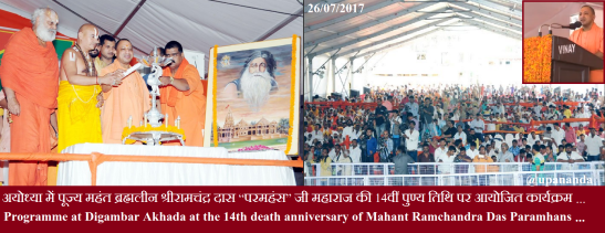 Hanuman Sharan Dasa | HENB | Ayodhya | July 27, 2017:: Uttar Pradesh Chief Minister and Gorakh Peeth Chief Mahant Yogi Adityanath on Wednesday said the Ram Mandir will be constructed in Ayodhya, nowhere else but on the land what is believed by cores of Hinds as the ‘birthplace of Lord Rama’.