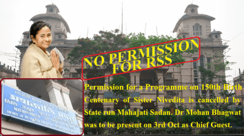 (A programme on Sister Nivedita’s 15oth birth centenary was scheduled on 3rd October in Mahajati Sadan. RSS and organizers of the prog claimed that the Mahajati Sadan authority had given permission for the programme and cancelled it later – Ed. Hindu Existence).