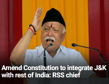 Amend Constitution to integrate J&K with rest of India: RSS chief Dr. Mohan Bhagwat.