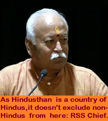PTI | Indore | Oct 28, 2017:: Hindusthan is a country of Hindus, but it does not mean that it does not belong to others, according to Rashtriya Swayamsevak Sangh chief Mohan Bhagwat.