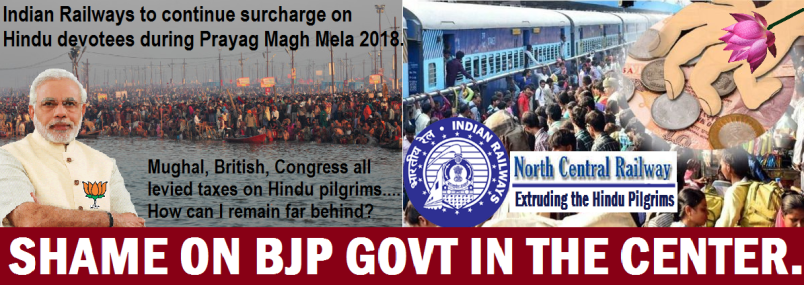 As per latest inputs, VHP Central Committee is planning to meet Railways Minister Piyush Goyal to stop such extrusion of money as levied as surcharge on Rly Tickets from the Hindu pilgrims time to time in many places in India.