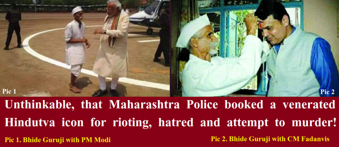 Keeping the equation of balance of situations, Maharashtra and Mumbai Police treated Bhide Guruji as a suspected perpetrator of Bhima-Koregaon and related clashes. They booked Bhide Guruji under the charges of incitement of rioting and even attempt to murder! Two Hindutva icons of Pune Bhide Guruji and Milind Ekbote both were booked+ to please the Dailt people to franchise their voting support in favour of BJP. Moreover, CM Fadnavis is designing a Judicial Commission on Bhima-Koregaon mishap+, only to escape from taking any direct action against Jignesh Mevani or Umar Khalid. In actualities, Fadanvis is an opportunist Hindu and coward like many BJP leaders in the list.