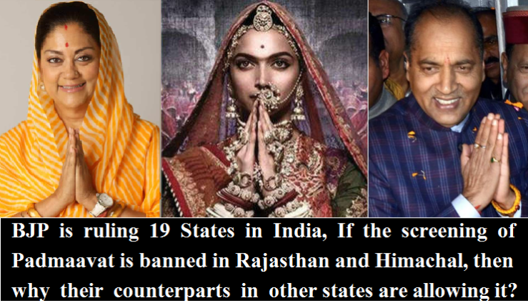 If Govt of Rajasthan and Govt of Himachal Pradesh have declared a ban on the Bhansali’s film Padmaavat on the reasoning of Karni Sena and others, what the other seventeen states run by BJP are doing? Why these 17 BJP run states (11 on their own an 6 with other allies) are allowing the release of Padmaavat ignoring the sentiment majority Hindu people?