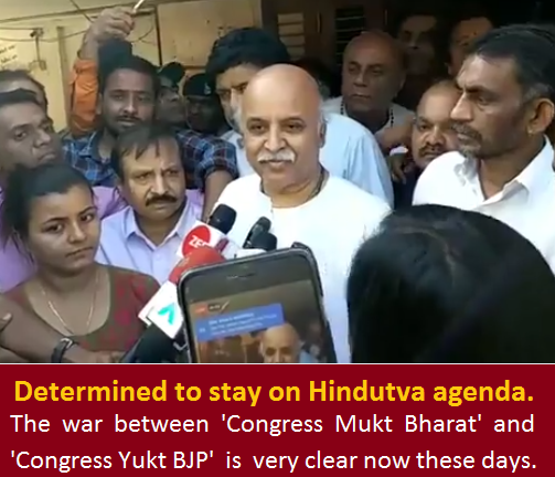 I think pro-Congress and the anti Hindu agents within BJP has successfully registered their entry in Hindutva arena by menace of ‘soft Hindutva’ or ‘adjustment of Hindutva’ in order to kill the ‘Hindu Rashtra’ ideology of RSS. Now, the war between the two schools of ‘Congress Mukt Bharat’ (Congress free India) and ‘Congress Yukt BJP’ (Congress controlled BJP) is very much clear to grab their share in politics.