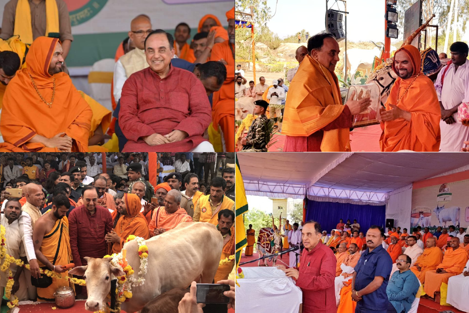 Dr Swamy was delivering his speech in the concluding session of Abhaya Mangala Gauyatra at Ragavendra Gau Ashram, Gangapura, Malur in Kolar on Jan 21. Abhaya Mangala Gauyatra was aimed to Save Cow Movement in Karnataka inspired by Srimad Jagadguru Shankaracharya Sri Sri Raghaveshwara Bharati Maha Swamigal. The yatra was started on Datta Jayanti (3rd Dec, 2017) and ended after 48 days covering 4000 kms all over Karnataka contacting million of people. During this yatra, the organizer Gau Seva Parivar and Ramachandrapura Matha collected about 1 crore signature from all walks of life demanding prohibition of cow slaughter through Abhayakshara/ Protection with pen/ petition signatures across the state by Raghavendra Swami ji and a team of volunteers travelling to each district of Karnataka. Dr. Swamy has been supporting the movement initiated by Raghavendra Swamigal for years and he demanded complete prohibition of slaughter in Karnataka along with his idea to hang all cow killers. The news made reactions in some media also.