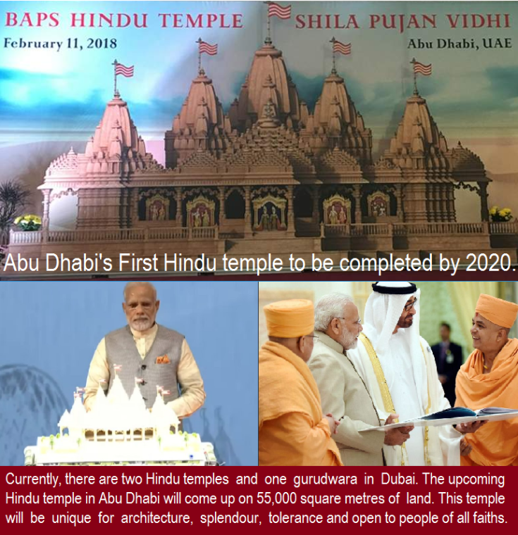 Sabita Rupani | HENB | Dubai | Feb 11, 2018:: Indian PM Narendra Modi inaugurated Abu Dhabi’s first Hindu temple as part of his three-nation tour to Palestine, Oman and the UAE. The temple design and structure is along the lines of the Akshardham temple in Delhi and others.