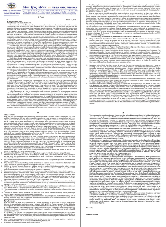 Talking to reporters after sharing his letter, Togadia said that he and Modi may have not met and talked to each other for the last 12 years, but he would like to meet and talk with his “Mota Bhai” (elder brother) for the fulfillment of promises to the Hindus, including building of a grand Ram temple in Ayodhya.