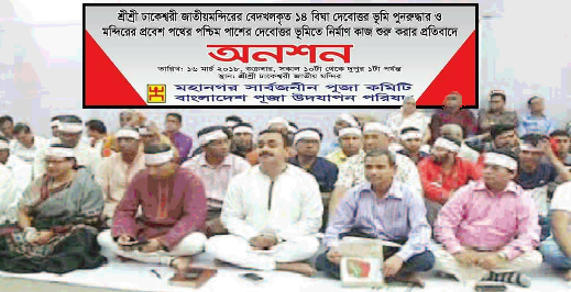 Rajat Upendra Nath | HENB | Dhaka | Mar 17, 2018:: The aggrieved Hindus in Dhaka sat in a hunger protest on Friday in protest of illegal construction in the western side of Bangladesh Heritage and National Temple “Dhakeswari Mandir”.