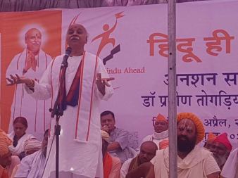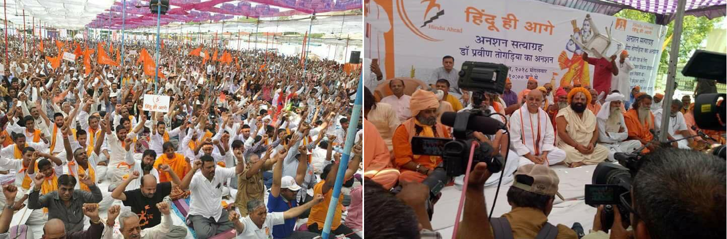 From the dais of ‘Sit-in-Fast’ programme under the banner “Hindu hi Aage” (Hindu Ahead), Dr Togadia declared an upcoming strong social movement for the speedy reconstruction of Ayodhya Ram Temple through a Central legislature for which BJP campaigned overtly during the Prime Ministerial Campaign for Narendra Modi.