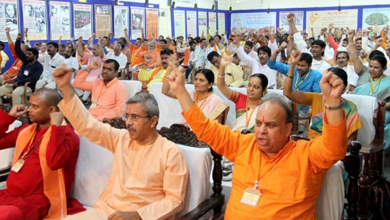 9. Sanatan Sanstha, Hindu Janjagruti Samiti and hundreds of Hindu Organisation and Hindu activists participated in 7th Akhil Bharatiya Hindu Adhiveshan ensured their faith on a Spiritual, Cultural, Constitutional and Sovereign Hindu Rashtra in Bharat instead of only Cultural Hindu Rashtra concept of RSS which has limitations to solve all the problems on Hindus in India.