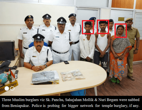 Police is investigating the case to find others in network for stealing Hindu temples in the dark of night. Sources suspect that the arrested Muslims are suspect illegal Bangladeshi having no valid citizenship. Kolkata is being disturbed in many criminal activities by illegal Bangladeshi Muslims.