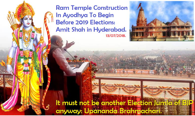 Upendra Rao | HENB | Hyderabad | July 14, 2018:: Playing the Hindu card, BJP President Amit Shah on Friday said that construction of a grand Ram temple at Ayodhya will begin before the 2019 elections.