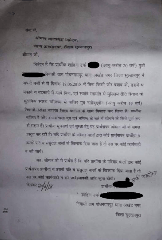 The Muslims connected in the Love Jihad rackets have also force the victim girl to submit an application dt 20/06/2018 to the UP police claiming that she is an adult and capable of making her own decisions. The application claims that on 18 June 2018 she married 19-year-old Wajid (son of Naseebuddin) as per Muslim tradition and without any undue influence, pressure or threat. She asks police to ignore if her parents file any appeal or case against her ‘husband/in-laws’.