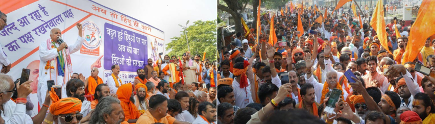 On 22nd Oct. lakhs of Ram Bhakts took their holy dip in River Saryu and offered puja in Ram Janmabhoomi Mandir and other temples and shrines in Ayodhya in thousands of groups and saw their Prabhu (Lord) Ram under a tent in a very pitiable condition. At 3 pm all the Rambhakts again gathered at Naya Ghat near Paramhans Ramchandra Das Samadhi Mandir to hear from Dr Pravin Togadia. Dr. Togadia conveyed his ultimatum to PM Modi and CM Yogi to declare plan to start Ayodhya Ram Mandir and hinted a Political movement to lead the Indian polity towards Ram Rajya after building a Ram Temple in Ayodhya Ramjanmabhoomi.