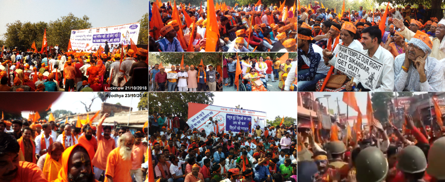 Upendra Bharti | HENB | Ayodhya | Oct 24, 2018:: Over a lakh of Hindus reached Ayodhya on 21st Oct night after attending the Aantrarashtriya Hindu Parishad (AHP)’s Rally at Lucknow Eco Park in a scorching heat under midday sun for four hours.