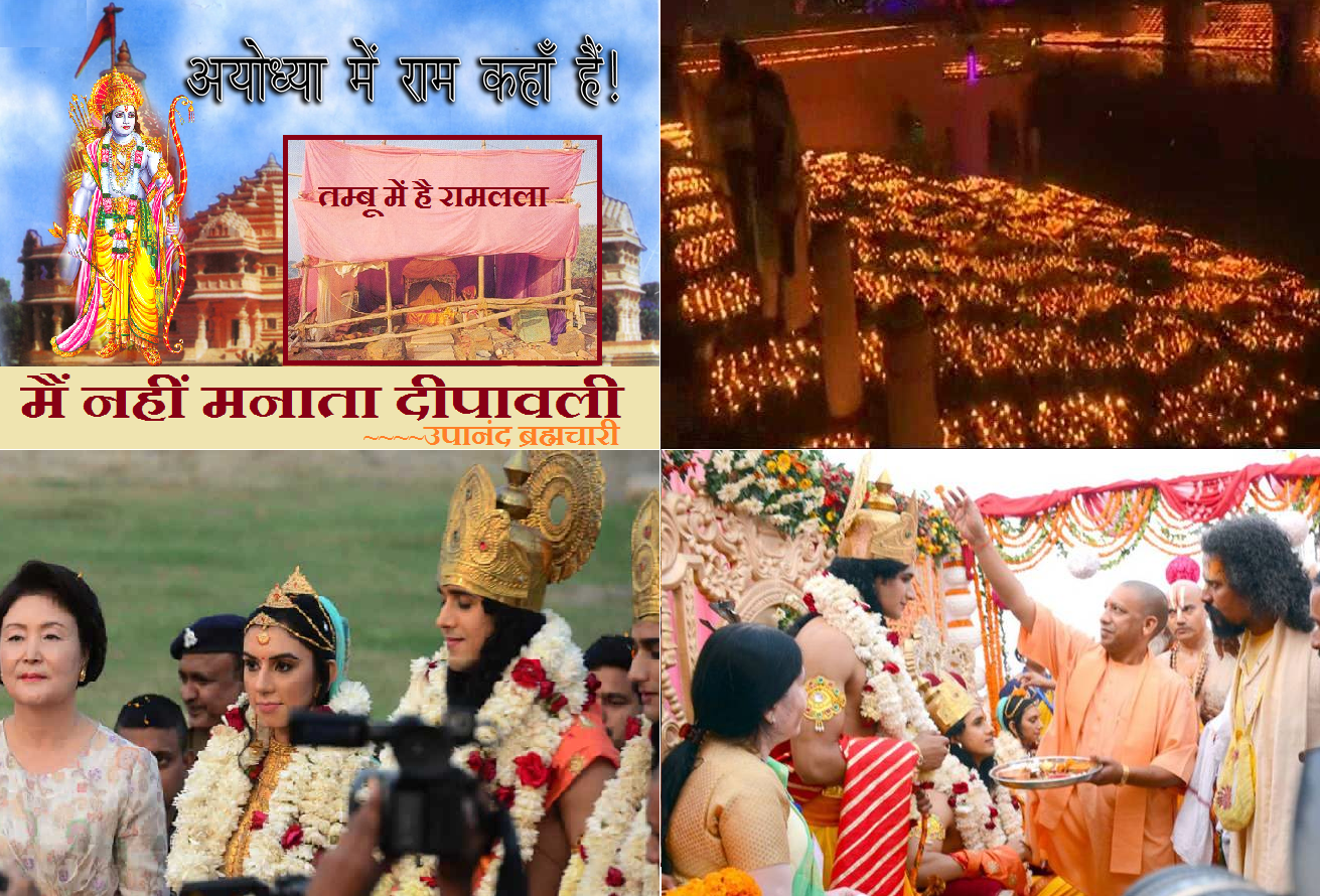 Upendra Bharti | HENB | Ayodhya | Nov 6, 2018:: It was a great expectations for the millions of devotees of Lord Ram that the UP CM Adityanath Yogi’s great celebration of Diwali “Deepotsav” lighting 3,00,000 Diyas in the bank of River Sarayu would end the present vanvas (exile) of Ramlala under a tent will see an end through some hopeful declaration by Yogi.