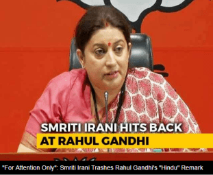 The latest dart came from union minister Smriti Irani who alleged that, “Rahul Gandhi, who used to say Hindus were terrorists, is now defining Hindutva.”