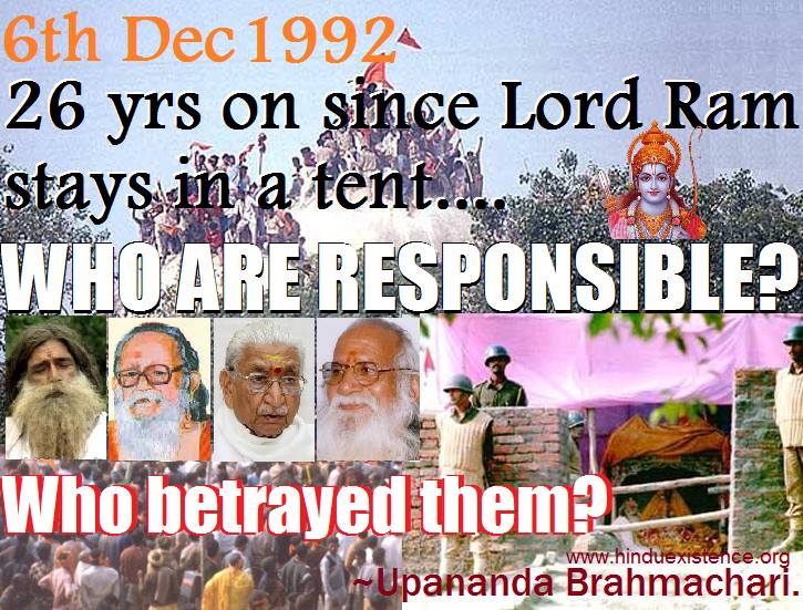 /हीन राजनीत में कहाँ खो गये है हम………. Who betrayed Ramlala? I wrote about it twice, read that thrice & finally made it as ash flies. ONLY I PRAY TO LORD RAMA TO GET THEM BACK IN CONSCIENCE TO MAKE AN ORDINANCE OR LAW TO START #AyodhyaRamTemple BY 15 DEC. JAI SRI RAM. ~ Upananda Brahmachari.