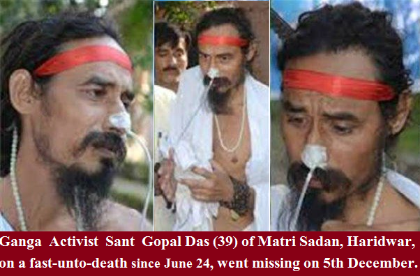 Kavita Upadhyay | Indian Express Web | Dehradun | Dec 7, 2018:: Activist Sant Gopal Das (39), on a fast-unto-death since June 24 for a clean and free-flowing Ganga, on Wednesday night went missing from a Dehradun hospital and police have not been able to trace him so far.