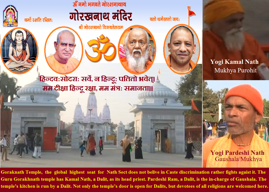 The official website of Guru Gorakhnath Temple website at www.gorakhnathmandir.in+ categorically denounces the caste discrimination in the Hindu society and considered Dalits as inseparable, important and essential part of Hindu society+ as like as Kahstriya, Bhraman, Vaishya, Jain, Boudhha, Sikh, Arya Samaji or Sanatani.